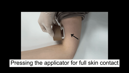 创新点3:按压式辅助器实现微针贴片便捷操作及牢固黏附皮肤