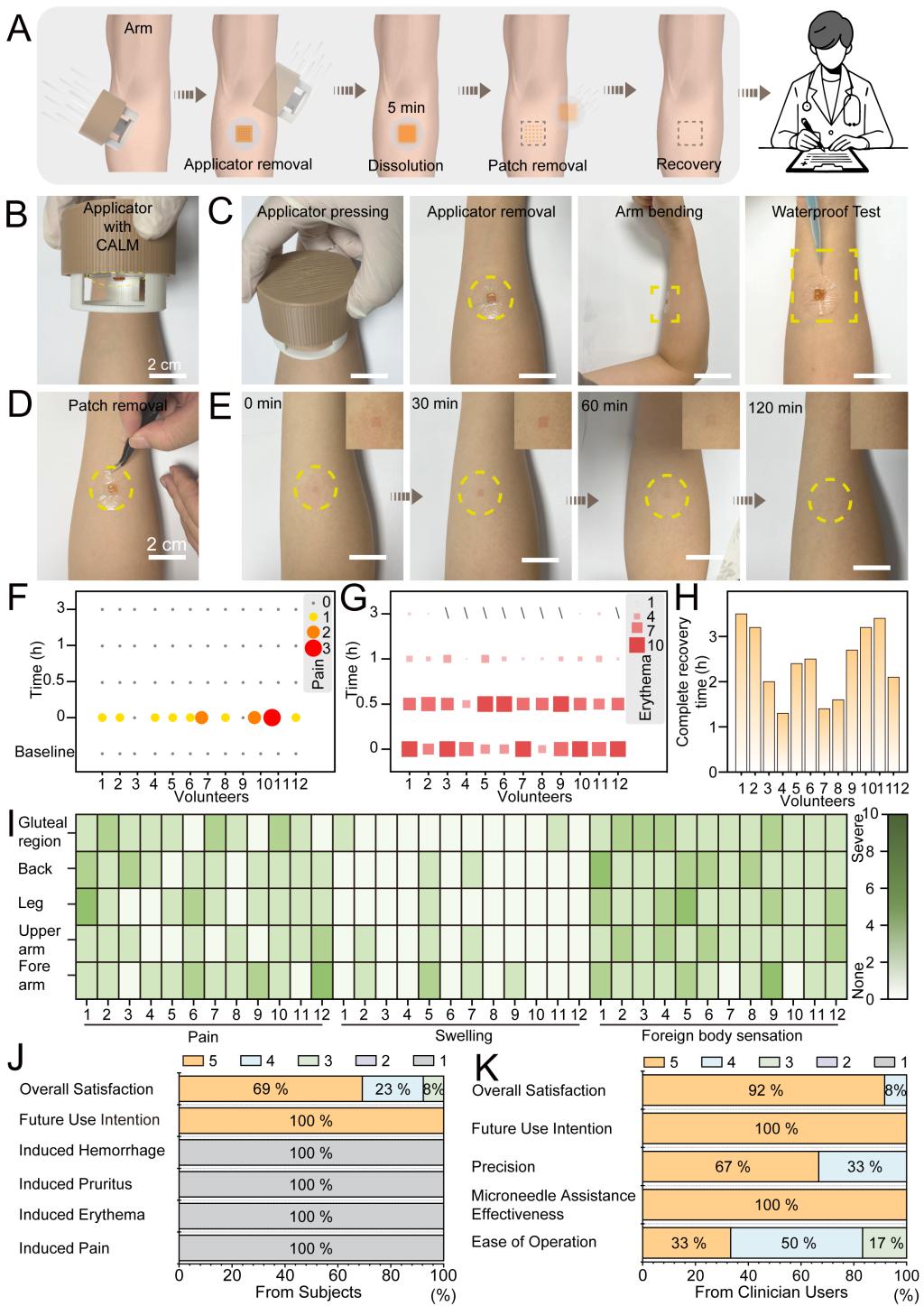 在严格的无菌操作下,麻醉医生为12名健康受试者使用了CALM系统,92%的人仅感受到轻微不适(疼痛评分1-2分),使用部位红斑2小时内消退,3小时完全恢复。受试者和操作者对CALM系统的舒适度、稳定性和操作便捷性满意度较高。